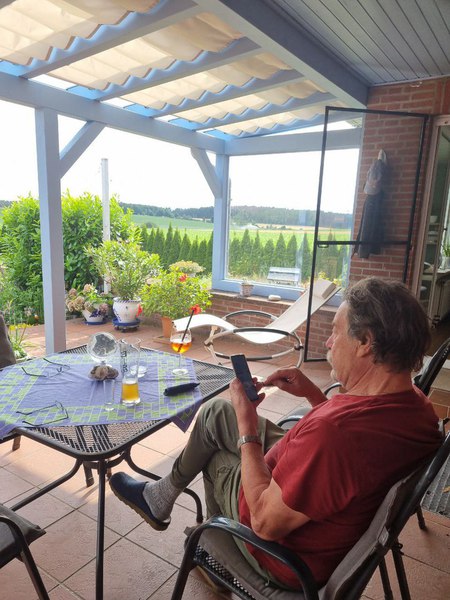 inmitten von Äckern und Wiesen und auf großer Terrasse wird wieder gemalt.